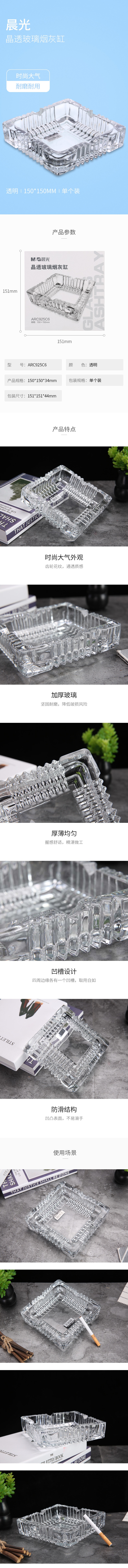 晨光晶透玻璃烟灰缸150mm*150mm ARC925C6 自营