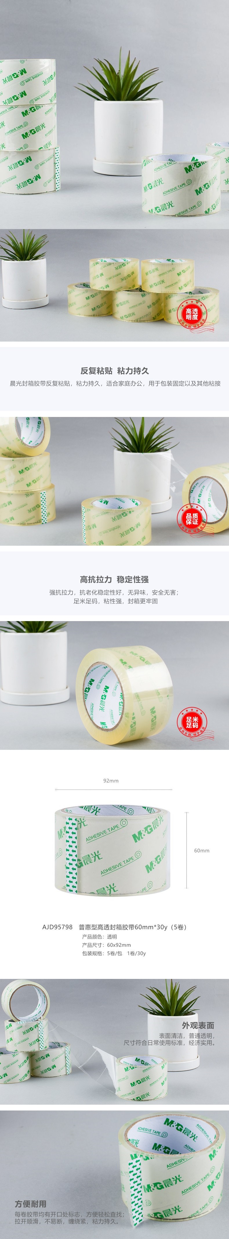 晨光普惠高透封箱胶带60mm*30y5卷AJD95798 自营