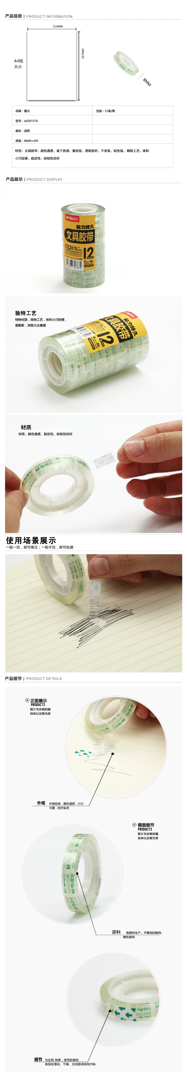 晨光文具胶带8mm*30y(12卷)AJD97370新(10筒) 自营