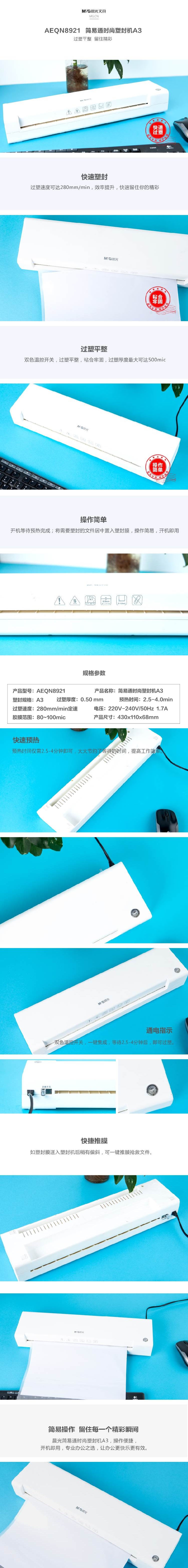 晨光简易通时尚A3塑封机AEQN8921 自营