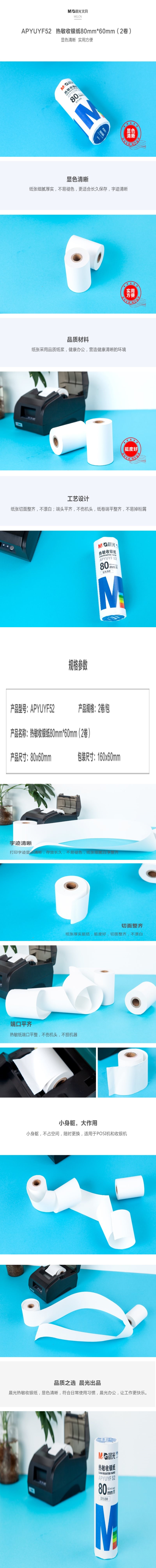 晨光热敏收银纸80MM*60MM(6筒 2卷/筒)APYUYF52 自营