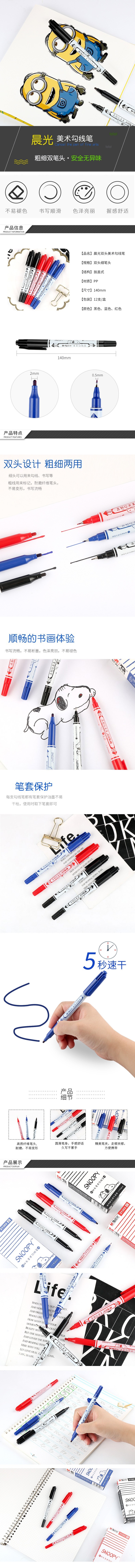 晨光记号笔史努比海洋风SPM21302黑双头 两盒装 黑色24支 自营