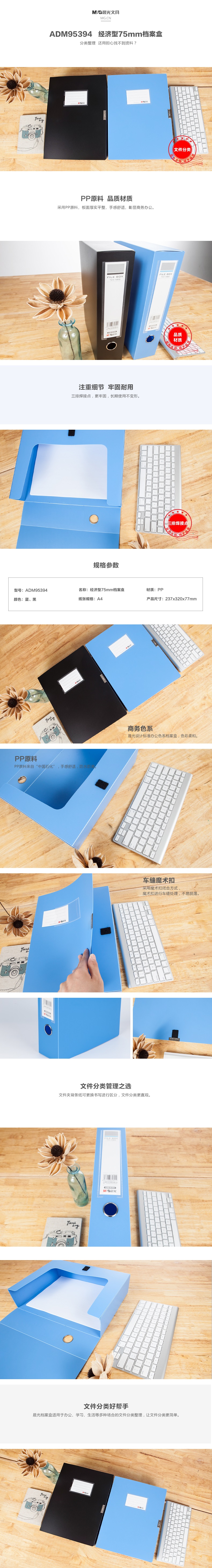 晨光经济型75mm档案盒蓝色ADM95394 自营
