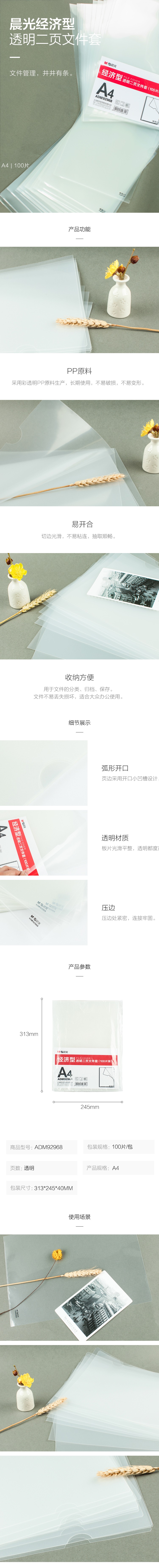 晨光经济型透明二页文件套A4-ADM92968(100片/包) 自营