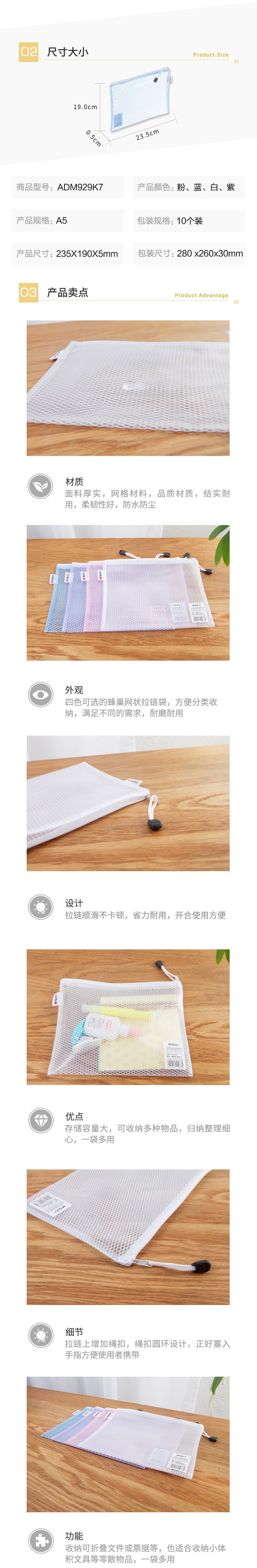 晨光蜂窝网状拉链袋A4ADM929K5 自营