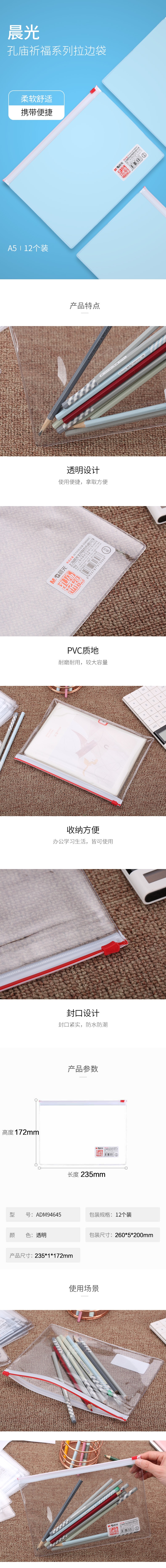 晨光孔庙祈福考试必备A5拉边袋ADM94645 自营