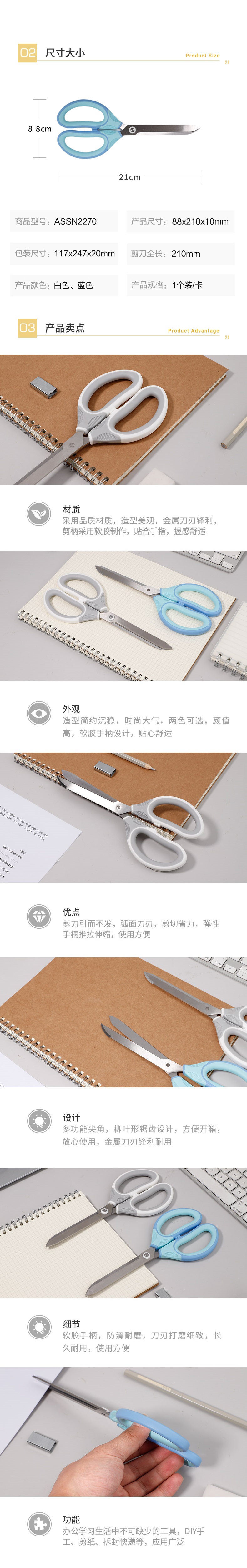 晨光TOP series 柳叶剪刀210MM ASSN2270 自营