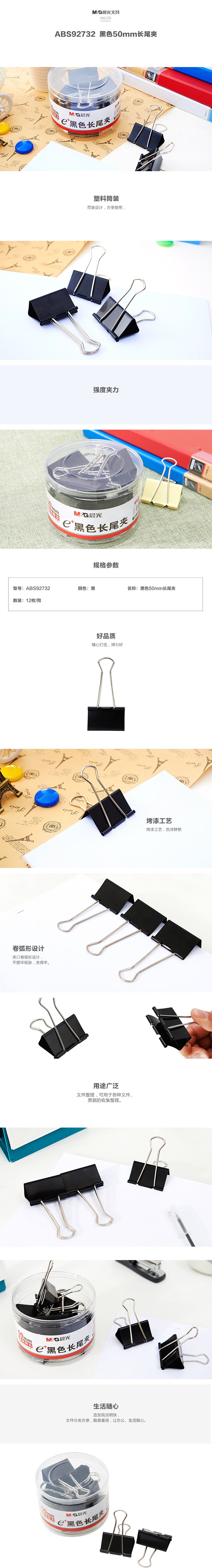 晨光Eplus黑色长尾夹50mm(筒装)ABS92732 自营