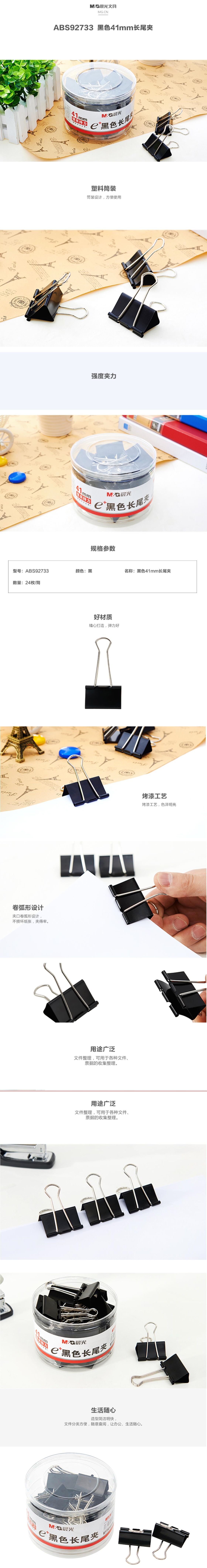 晨光Eplus黑色长尾夹41mm(筒装)ABS92733 自营