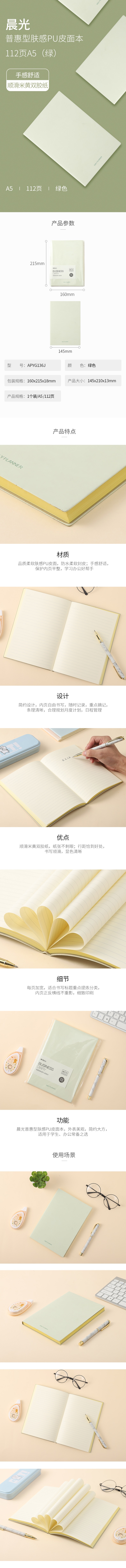 晨光普惠型肤感PU皮面本112页A5(绿) 自营