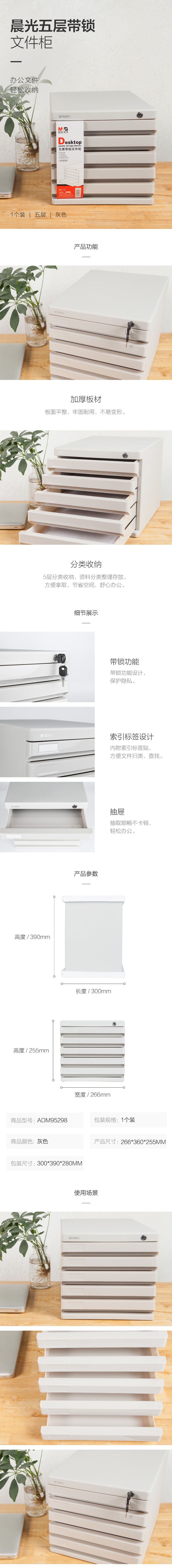 晨光五层带锁文件柜ADM95298(灰) 自营