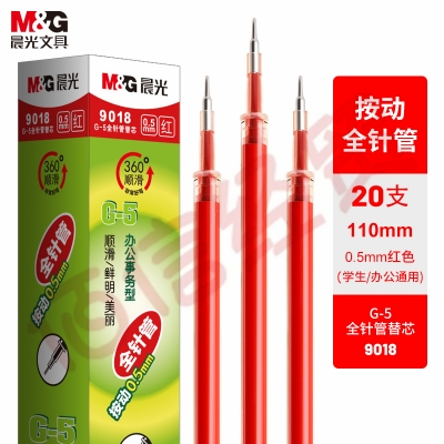 ■晨光0.5mm红色中性笔替芯-- G-5全针管系列- 20支/盒9018C 自营
