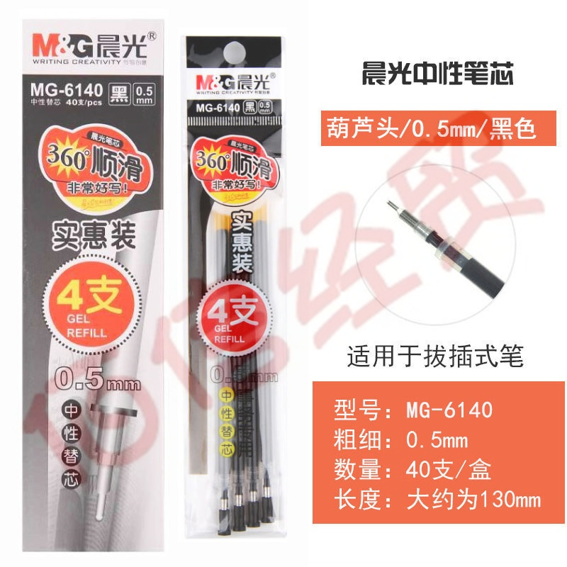 ■晨光-MG6140 葫芦头中性笔签字笔水性笔芯替芯 0.5mm 黑色 40支/盒 自营