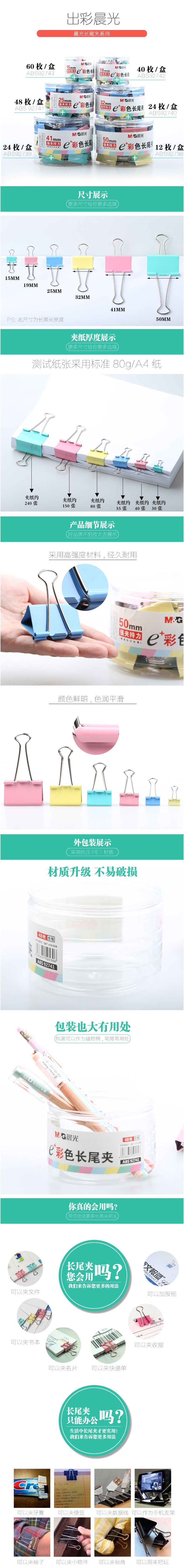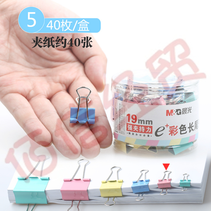 ■晨光彩色长尾夹19mm(筒装)ABS92742-40个/筒 自营