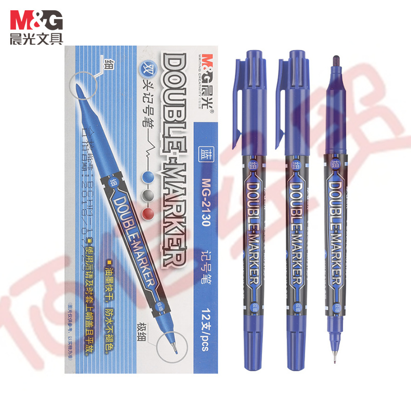 ■晨光双头记号笔-MG2130-蓝-12支/盒 自营