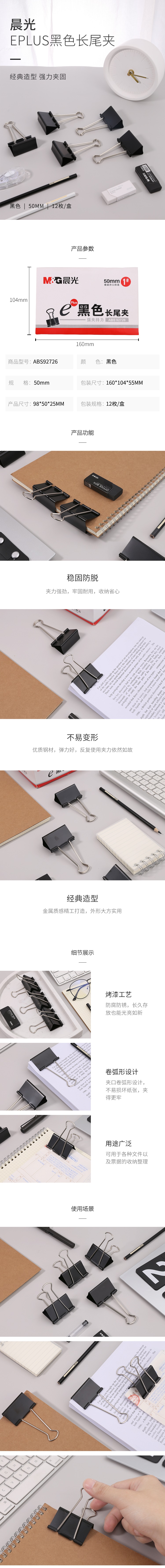 晨光Eplus黑色长尾夹50mm(盒装)ABS92726 自营
