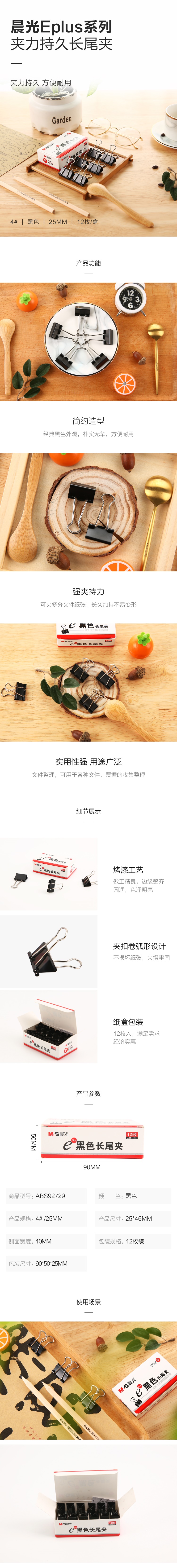 晨光Eplus黑色长尾夹25mm(盒装)ABS92729 自营