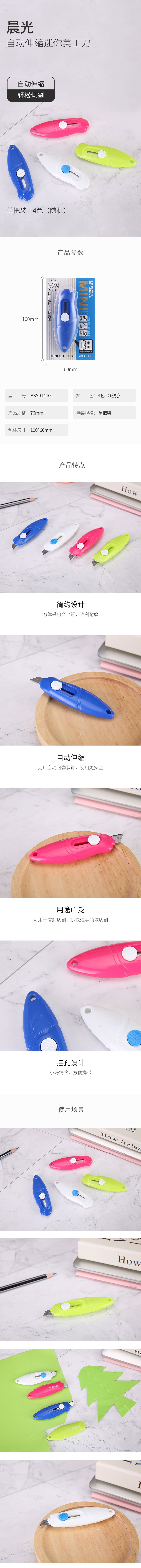 晨光自动伸缩迷你美工刀ASS91410--单把装-颜色随机 自营