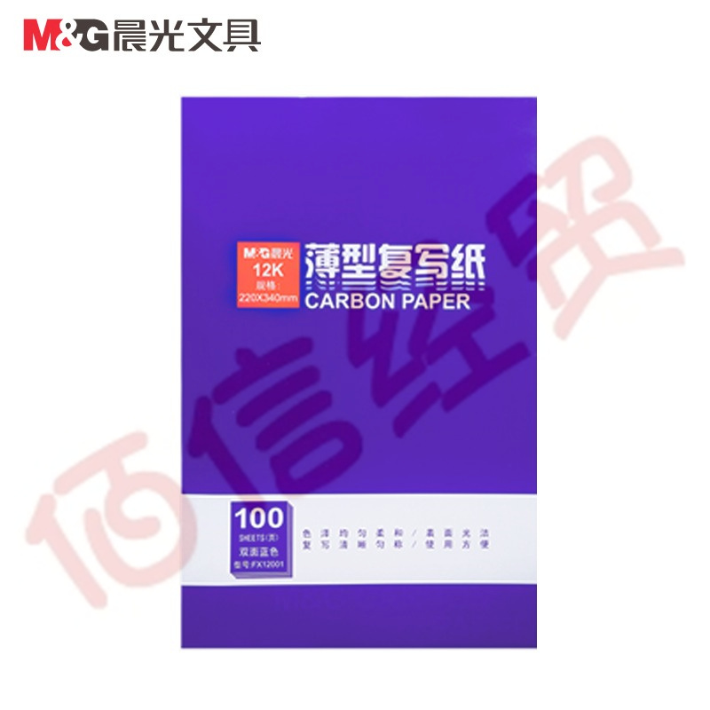 晨光(M&G)12K复写纸 经济耐用薄型双面印蓝纸/踏蓝纸/印色纸(220*340mm)5本装 APYVF608 自营