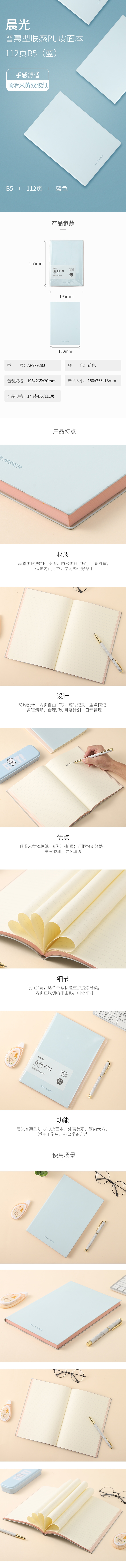 ■晨光(M&G)文具B5/112张蓝色办公笔记本 会议记录皮面本 普惠型肤感商务记事本子 单本装APYF938J 自营