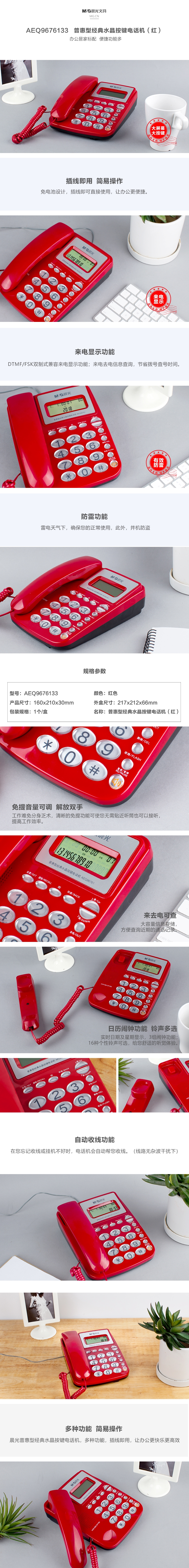 ■晨光普惠型经典水晶按键电话机AEQ96761红 自营