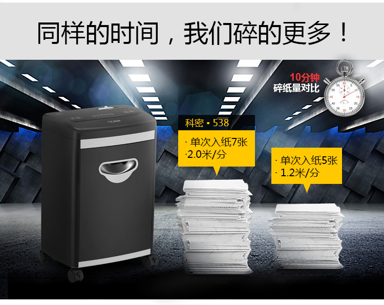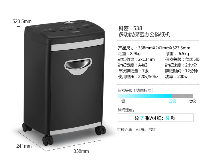科密S538碎纸机 中小型单位办公用五级高保密细颗粒状文件粉碎机 7张12分钟2*13mm 自营