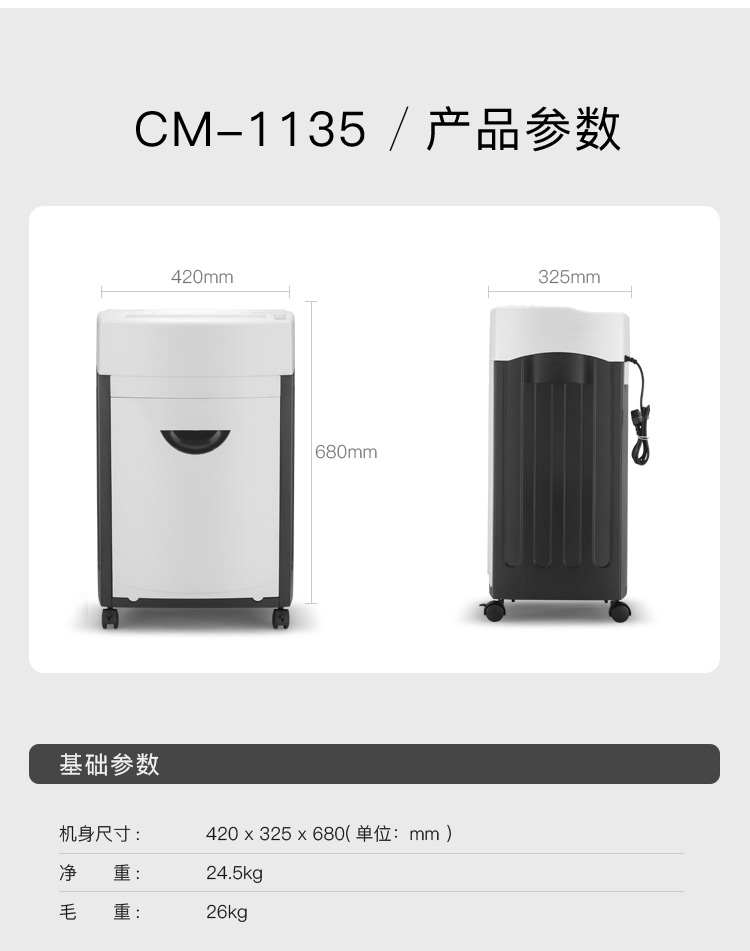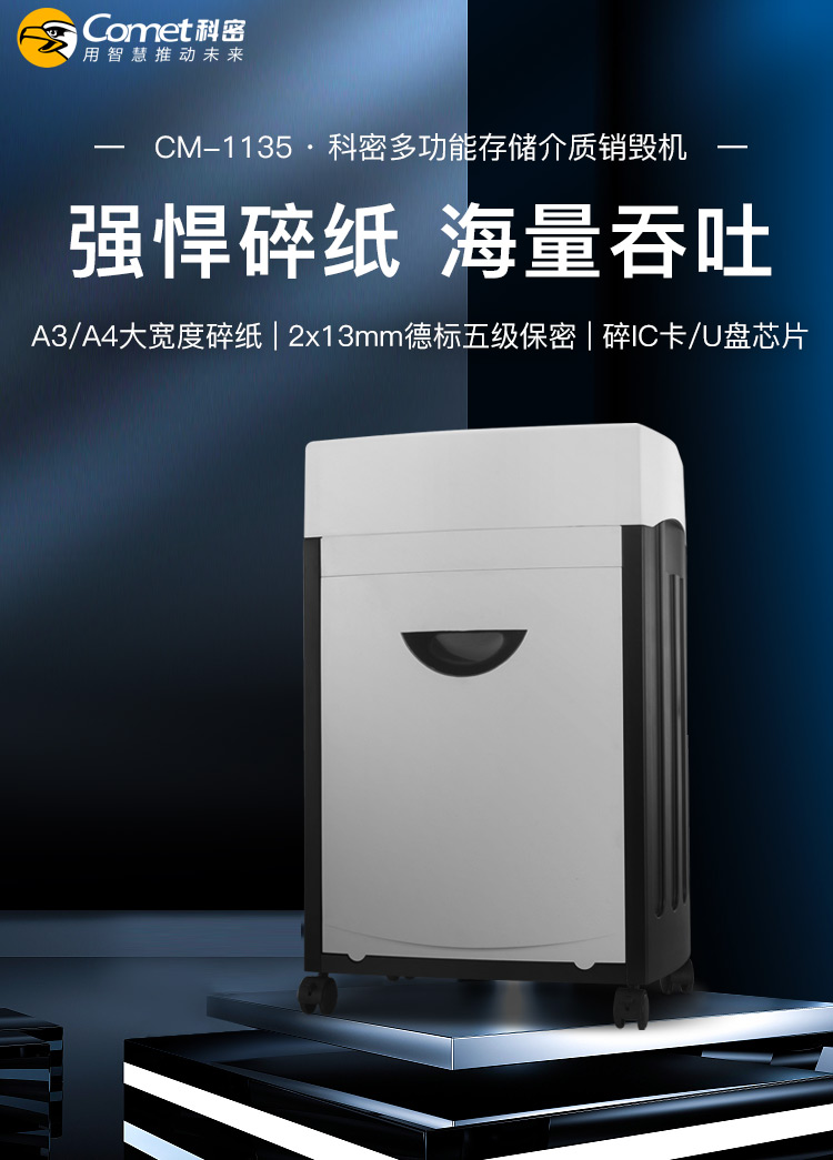 科密碎纸机CM-1135 多功能存储介质销毁机 可碎纸、IC卡、芯片 A3纸入口 国保测认证保密等级二级 35L 自营