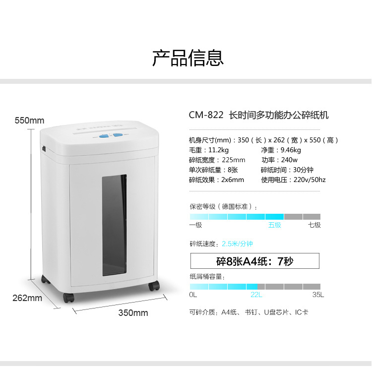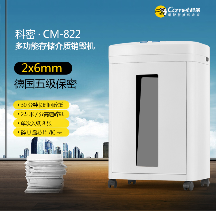科密碎纸机CM-822 多功能存储介质销毁机 可碎纸、IC卡、芯片 国保测认证保密等级二级 22L 自营