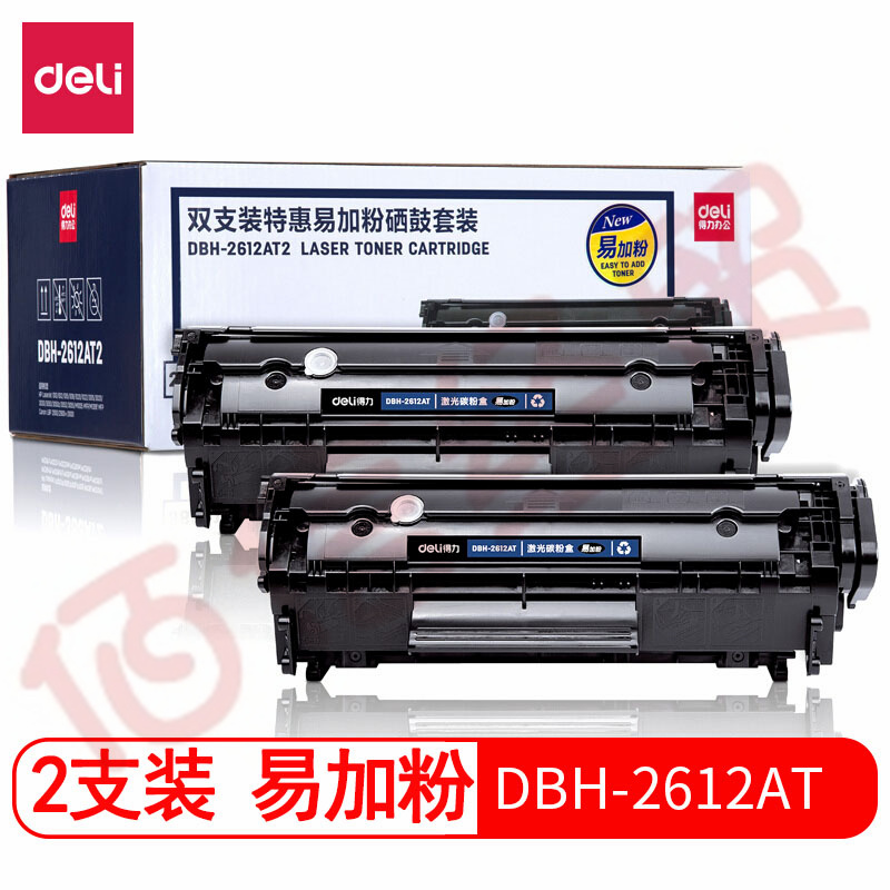 ■得力(deli)DBH-2612AT2易加粉硒鼓 12A打印机硒鼓2支装 适用HP1020plus M1005 1010 1012 1015 3050 M1319f) 自营