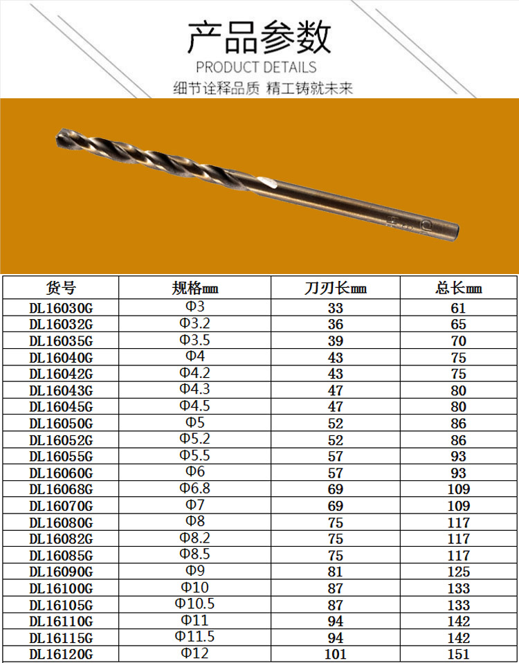 得力 deli-DL16060G- Φ6mm麻花钻头套装 手电钻打孔冲击三角钻头 直柄麻花钻(10支/盒) 自营