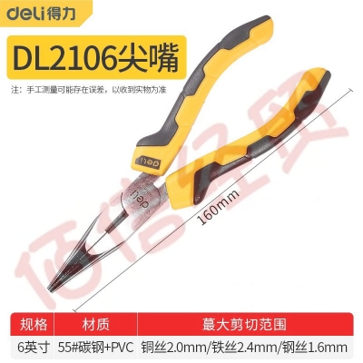 ■得力(deli)尖嘴钳6寸尖口钳子钢丝钳 尖头胶钳 工具夹钳 老虎钳子胶柄 6寸/160mm/DL2106 自营