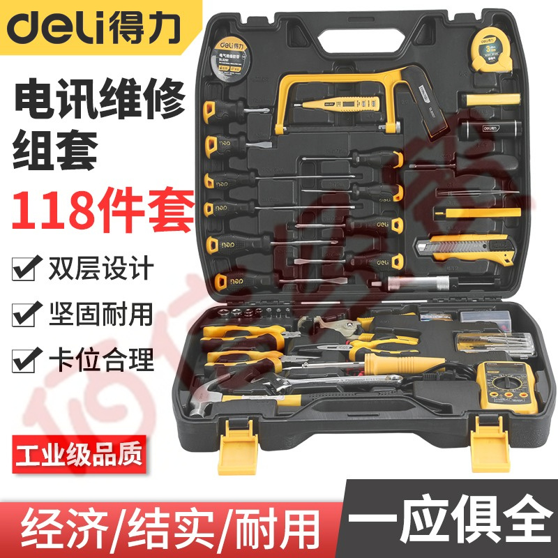 ■得力(deli)多功能五金工具箱电讯套装钟表批电工木工综合维修组套万用表电烙铁钢丝钳扳手套装 【电工综合套装118件套】DL5968 自营