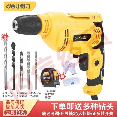 ■得力(deli) 家用冲击电钻手电钻大功率冲击钻电转手钻工业级多功能打孔钻孔插电式 450W电钻DL6283【木工钻孔】 自营