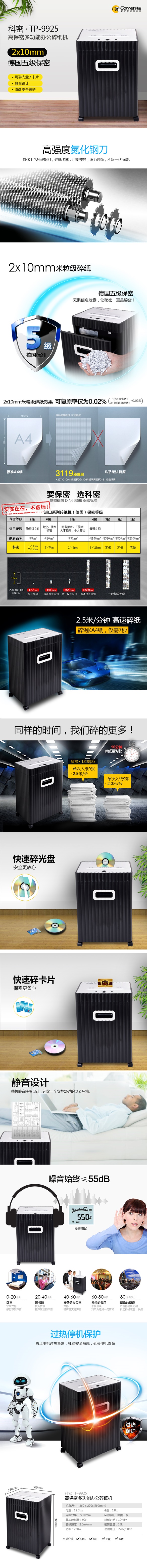 科密碎纸机9925颗粒高保密迷你静音财务文件家用粉碎机办公碎纸机 五级保密商用小型家用大容量碎纸粉碎 自营