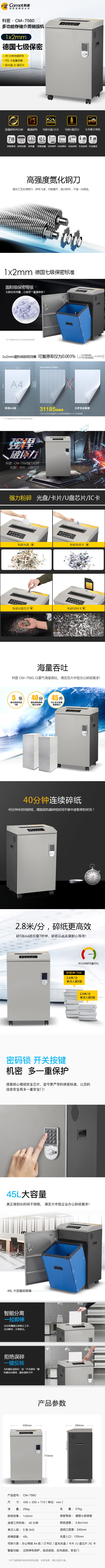 科密碎纸机CM-7560 多功能存储介质销毁机 纸粉碎效果1mm*2mm可碎纸 IC卡 芯片 国保测认证保密等级一级 45L 自营