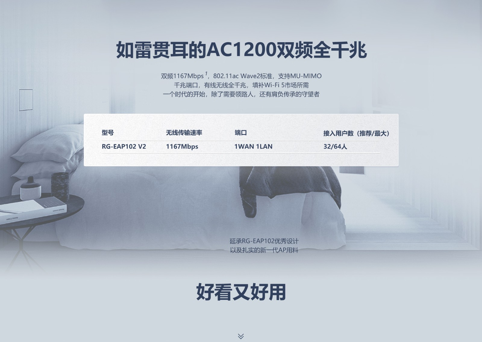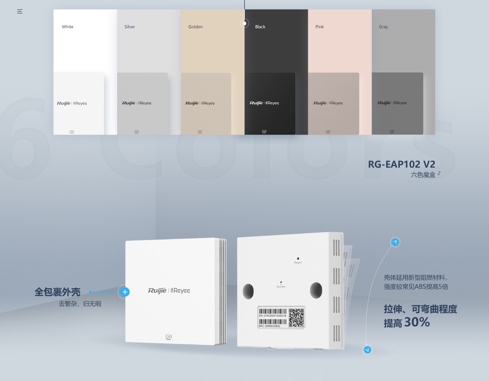 锐捷(Ruijie)双频千兆无线面板AP RG-EAP102 V2室内ap 企业级wifi无线接入点 白色 自营