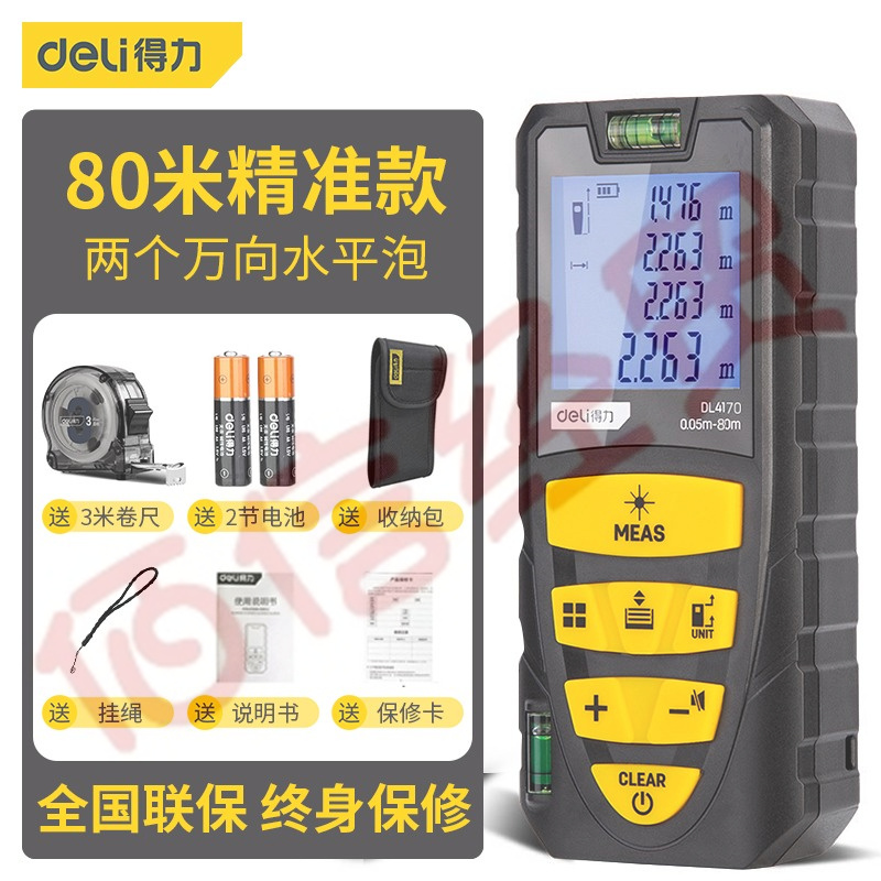 ■得力高精度手持式激光测距仪红外线-激光测距仪80m DL4170 自营