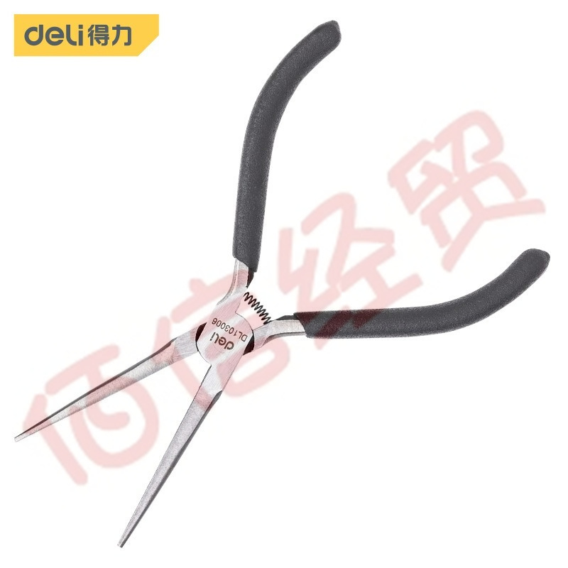 ■得力(deli) DL103005 沾塑柄迷你弯嘴钳高碳钢电子钳曲嘴钳子5英寸 自营
