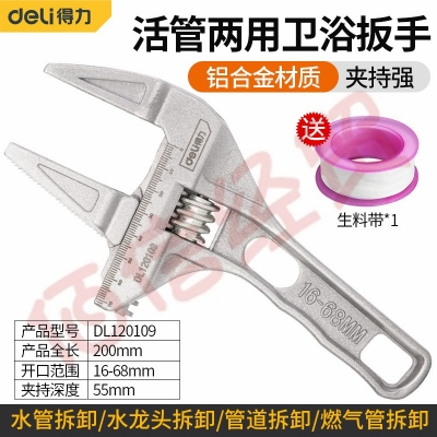 ■得力(deli)DL120109卫浴扳手多功能工具短柄大开口器维修下水器管道空调活口扳手 活管两用卫浴扳手16-68mm 自营