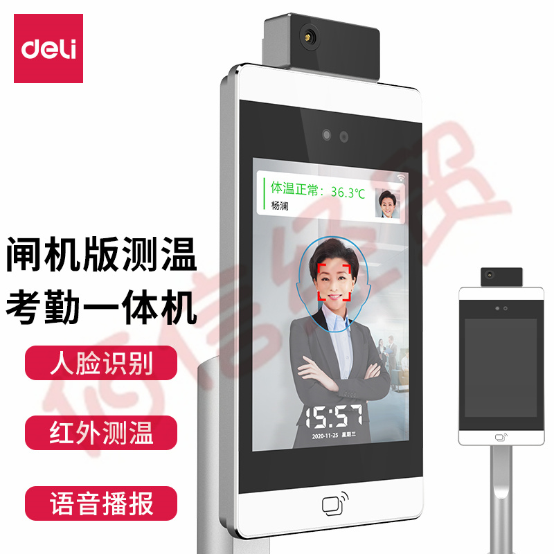 得力(deli)DL-ACS804-TW 人脸识别测温门禁考勤一体机 8英寸屏幕显示医院学校写字楼快速测温识别(闸机版) 自营