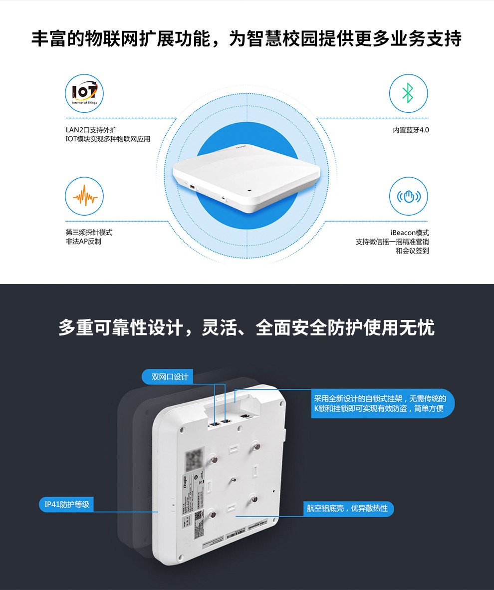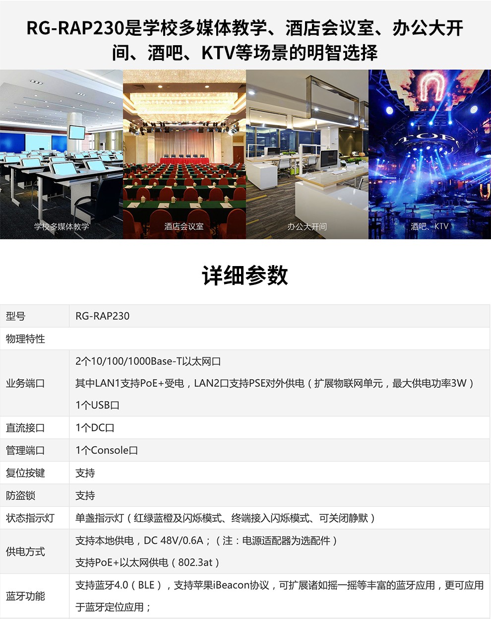 锐捷(Ruijie)RG-RAP230室内高密三路双频企业级wifi无线接入点 无线AP 白色 自营