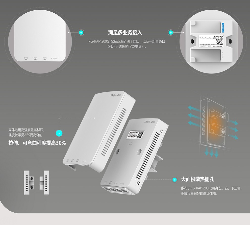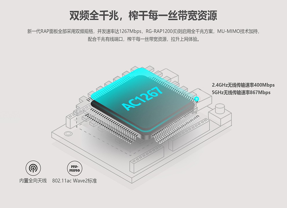 锐捷(Ruijie)无线ap面板千兆 双频1267M RG-RAP1200(E)双LAN口无线接入点 RG-RAP1200(E) 自营